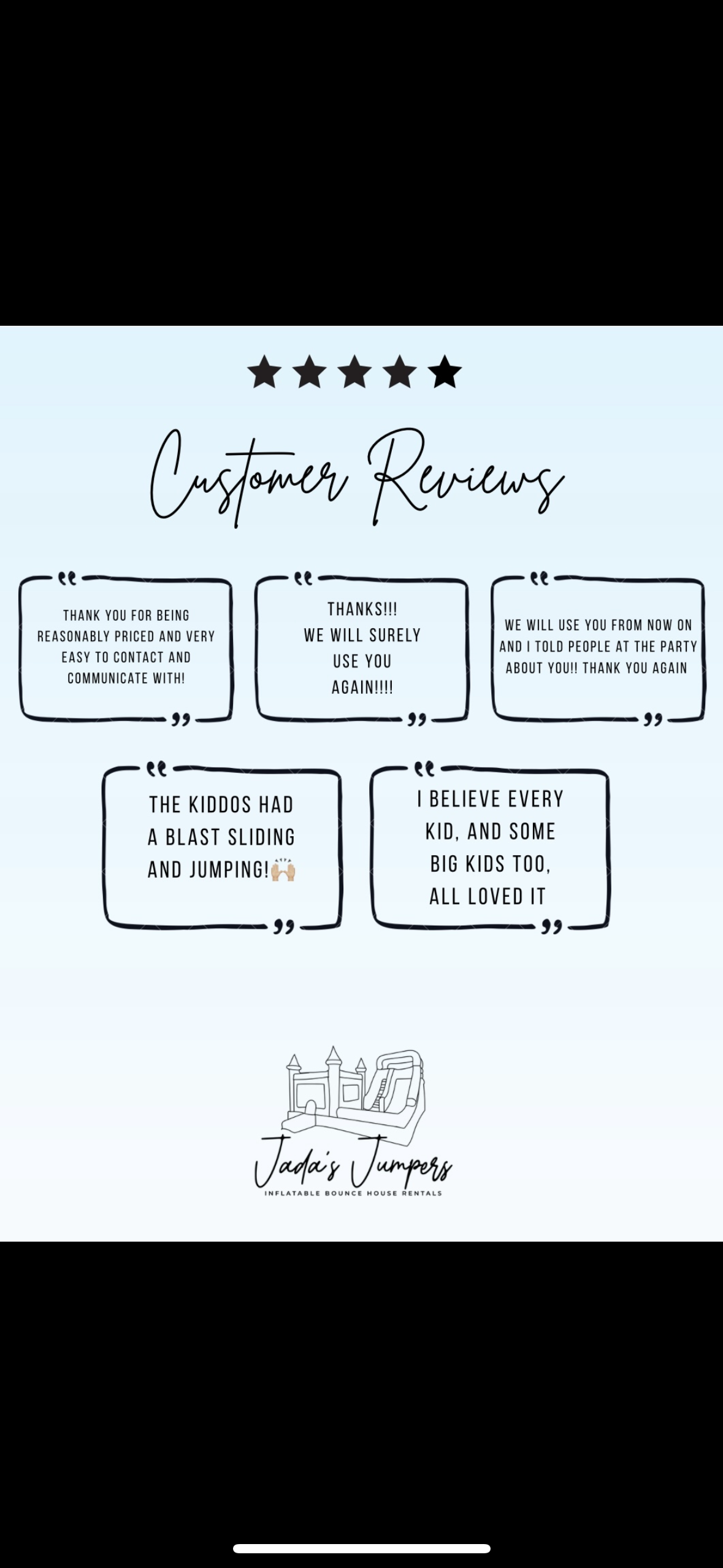 We provide high-quality, commercial-grade inflatables designed for all ages. From toddlers to adults, everyone can safely enjoy the fun. With reliable setup, affordable pricing, and a focus on safety, Jada’s Jumpers is your trusted choice for unforgettable events.